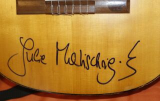 Ich verkaufe hier ein Stück Musikgeschichte, die Gitarre mit der die weltweit berühmte und gefragte Konzertgitarristin Julia Malischnig Gitarre spielen gelernt hat (ihr Autogramm ist ebenfalls auf der Gitarre). Eine Hopf Gitarre aus dem Jahr 1981. Leider ist der Korpus gebrochen und muss/sollte repariert werden. Allerdings ist der Klang immer noch sehr gut (eventuell als Lagerfeuer oder Almgitarre immer noch verwendbar). Inklusive Gitarrentasche.