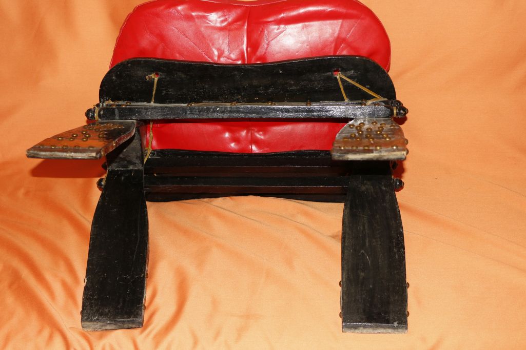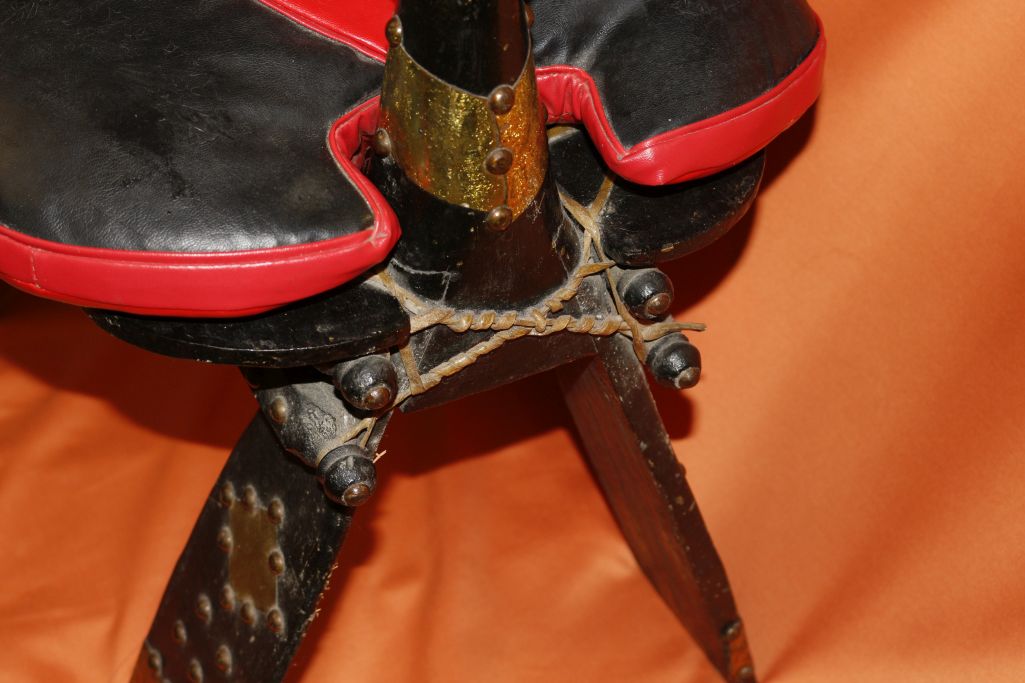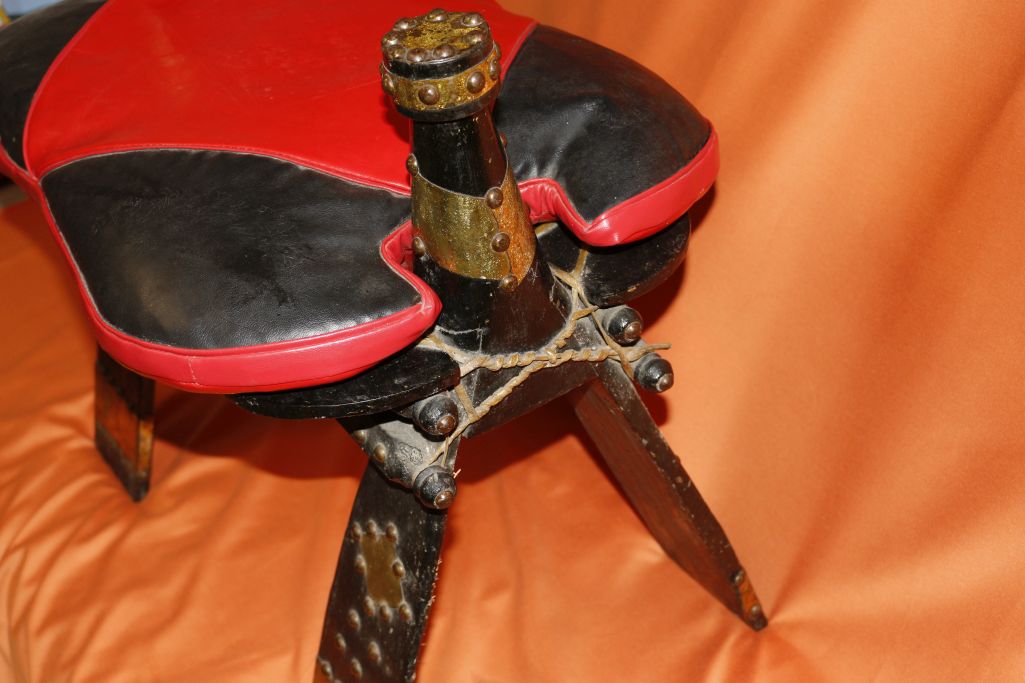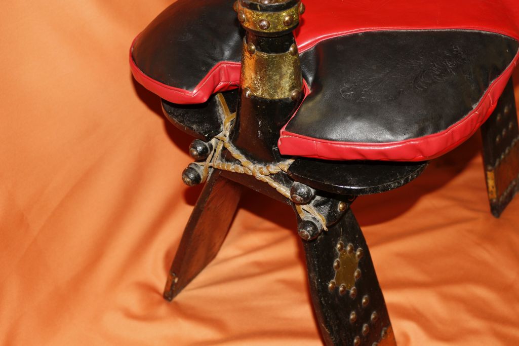 Ich verkaufe hier einen originalen, ägyptischen Kamelsattel, Hocker mit schönen Messingverzierungen, und Nieten. Mit schönen, geprägten Kunstleder Polster mit original Stroh Füllung.