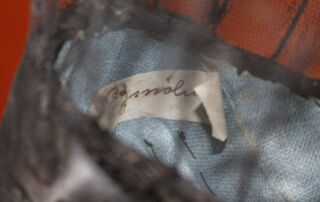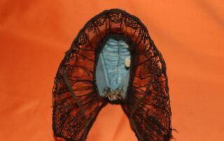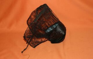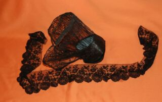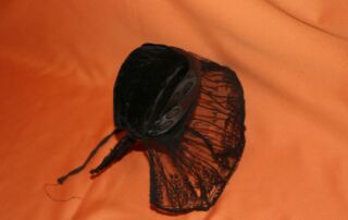 Ich verkaufe hier eine antike Trachten bzw. Trauerhaube mit feiner Spitze am Drahtgeflecht und vermutlich Samt am Ende. Weiters ist eine Schleife aus Spitze dabei. Innen in der Haube steht noch ein Name „Zmölnig“.