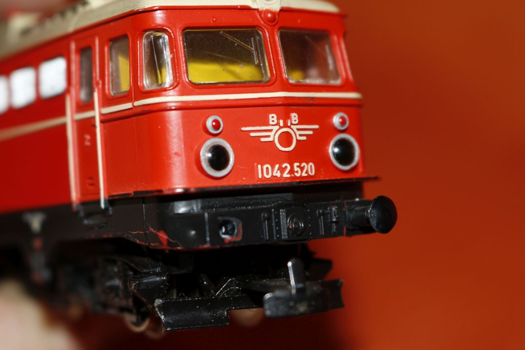 Ich verkaufe hier eine schöne und bespielte 1042 Lokomotive der Marke Kleinbahn in H0. Sie funktioniert aber benötigt Liebe. Ein Pantograph ist schief, Lichter habe ich keine gesehen (könnte aber an den Schienen oder dem Trafo gelegen haben) und sie Ruckelt bzw. dreht durch (möglicherweise auch wegen den Schienen.