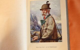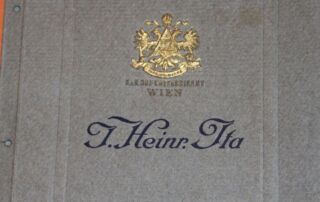 K&K Hof-Hutfabrikant Heinrich Ita. Ein wunderschöner Kartoneinband mit dem goldenen K&K Adler und innen ein Heftchen mit Kaiser Franz Josef und einigen jagdlichen Bildern, geschützt mit Spinnenpapier in Top Zustand. Leider dürfte ein Teil des Heftchens fehlen. Die Schnurbindung fehlt, ca. 12 Seiten sind vorhanden.