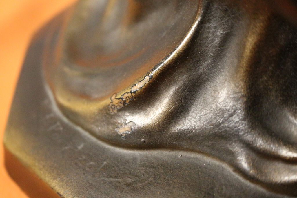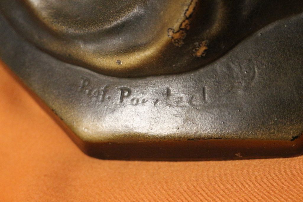 Ich verkaufe hier eine Keramik Skulptur von Prof. (wohl Otto) Poertzel 1876 – 1963, einen knienden Frauenakt bronziert mit diversen Bereibungen und Gebrauchsspuren. Die Figur ist signiert und am Boden mit der Nummer 1061 gemarkt. Da ich aber nicht genau sagen kann, ob sie Original ist der „günstigere“ Preis. Wenn ich bestätigen kann, dass sie Original ist, dann sind wir irgendwo bei 500 Euro und mehr :-)
