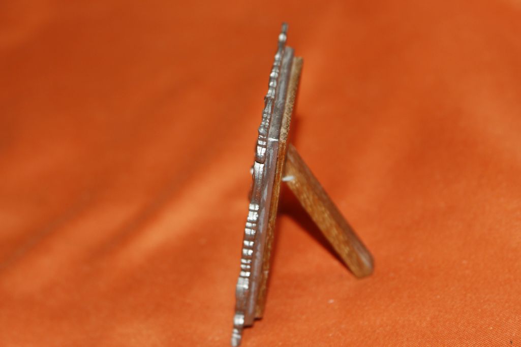 Ich verkaufe hier ein kleines Gedenkbildchen mit einem betenden Mädchen, der Rahmen und das Mädchen sind aus Zinn, der rote Hintergrund dürfte Samt sein.