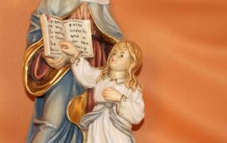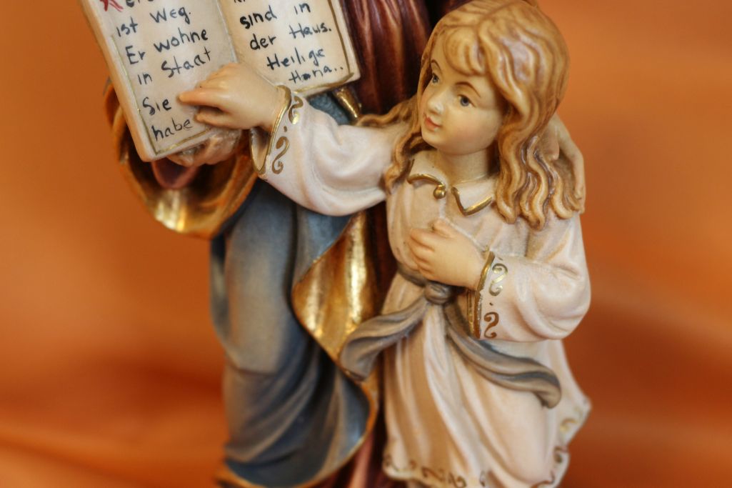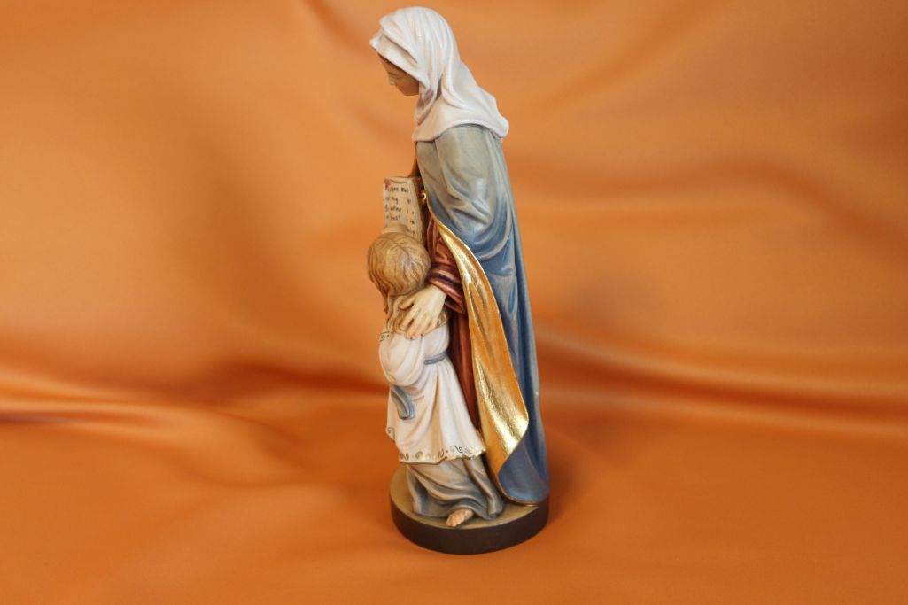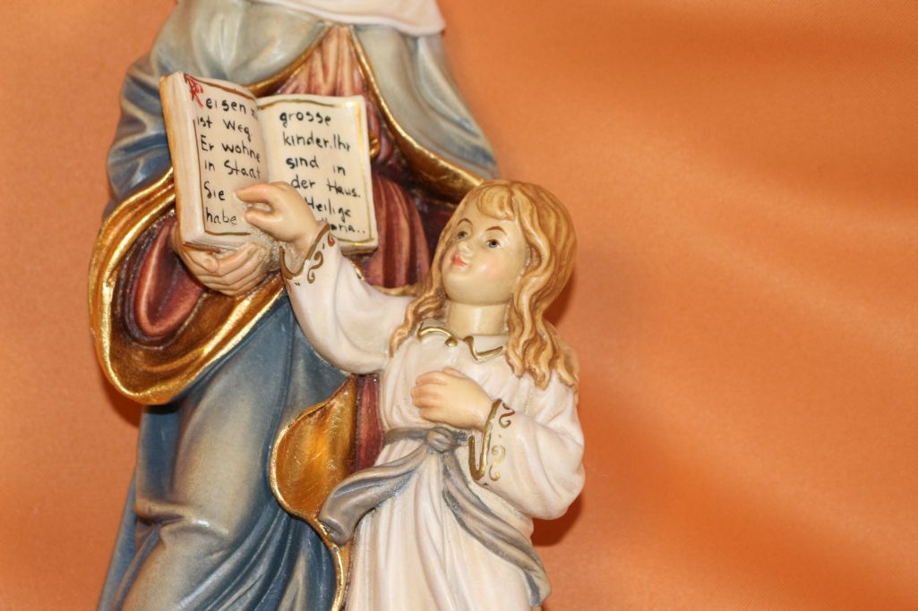 Hier wird die Heilige Anna dargestellt, wie sie der Mutter Maria das lesen beibringt.