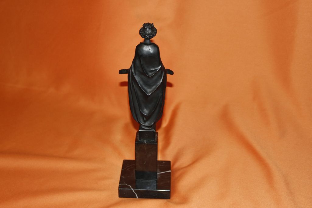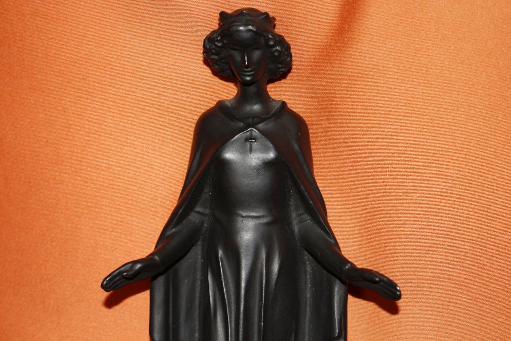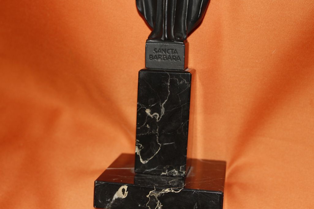Ich verkaufe hier eine wunderschöne Statue der Heiligen Barbara die Schutzpatronin der Bergleute und Artilleristen so wie die Patronin von Architekten, Maurern, Zimmerleuten, Dachdeckern, Geologen, Glockengießern, Köchen, Metzgern und vielen anderen… sie besteht wohl aus Gusseisen auf einem Marmorsockel.