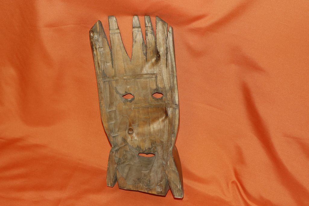 Ich verkaufe hier eine alte, vermutlich afrikanische, Holzmaske. Sie weißt Gebrauchsspuren und Trocknungsrisse auf aber ist alles in allem in recht gutem Zustand!