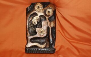 Ich verkaufe hier eine schöne Skulptur aus Holz in Form einer Sonne bzw. Gesichter auf der einen Seite und auf der Rückseite ein Vogel mit Blumen, in sehr gutem Zustand. Leichte Gebrauchsspuren und Trocknungsrisse sind natürlich vorhanden.