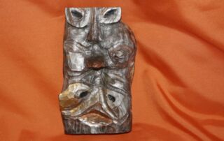 Ich verkaufe hier eine schöne Skulptur aus Holz, farbig gefasst, in Form von einem Wendegesicht, wenn man die Skulptur auf den Kopf stellt, sieht man ein anderes Gesicht. Die Rüclseite ist ebenfalls geschnitzt. Die Skulptur ist in sehr guten Zustand. Leichte Gebrauchsspuren und Trocknungsrisse sind natürlich vorhanden.