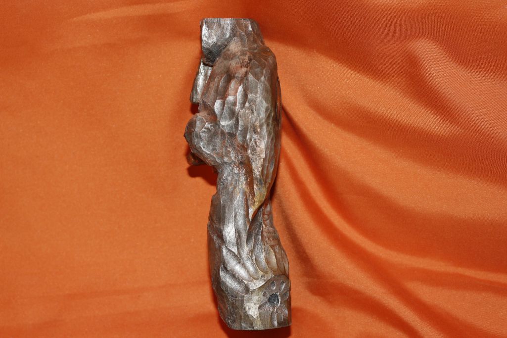 Ich verkaufe hier eine schöne Skulptur aus Holz, farbig gefasst, in Form von einem Wendegesicht, wenn man die Skulptur auf den Kopf stellt, sieht man ein anderes Gesicht. Die Rüclseite ist ebenfalls geschnitzt. Die Skulptur ist in sehr guten Zustand. Leichte Gebrauchsspuren und Trocknungsrisse sind natürlich vorhanden.