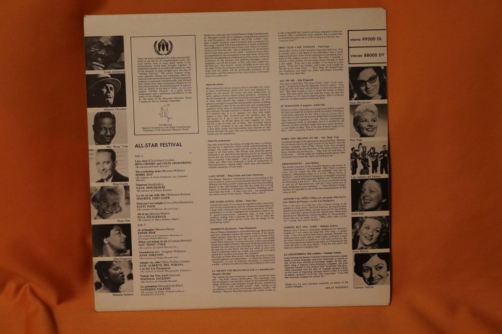 Ich verkaufe hier eine Vinyl LP „All Star Festival“ mit z.B. Louis Armstrong, Bing Crosby, Nana Mouskouri uvm.