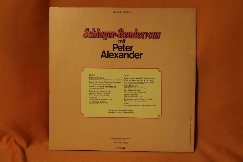 Ich verkaufe hier eine Vinyl LP „Schlager-Rendezvous mit Peter Alexander “ von Peter Alexander